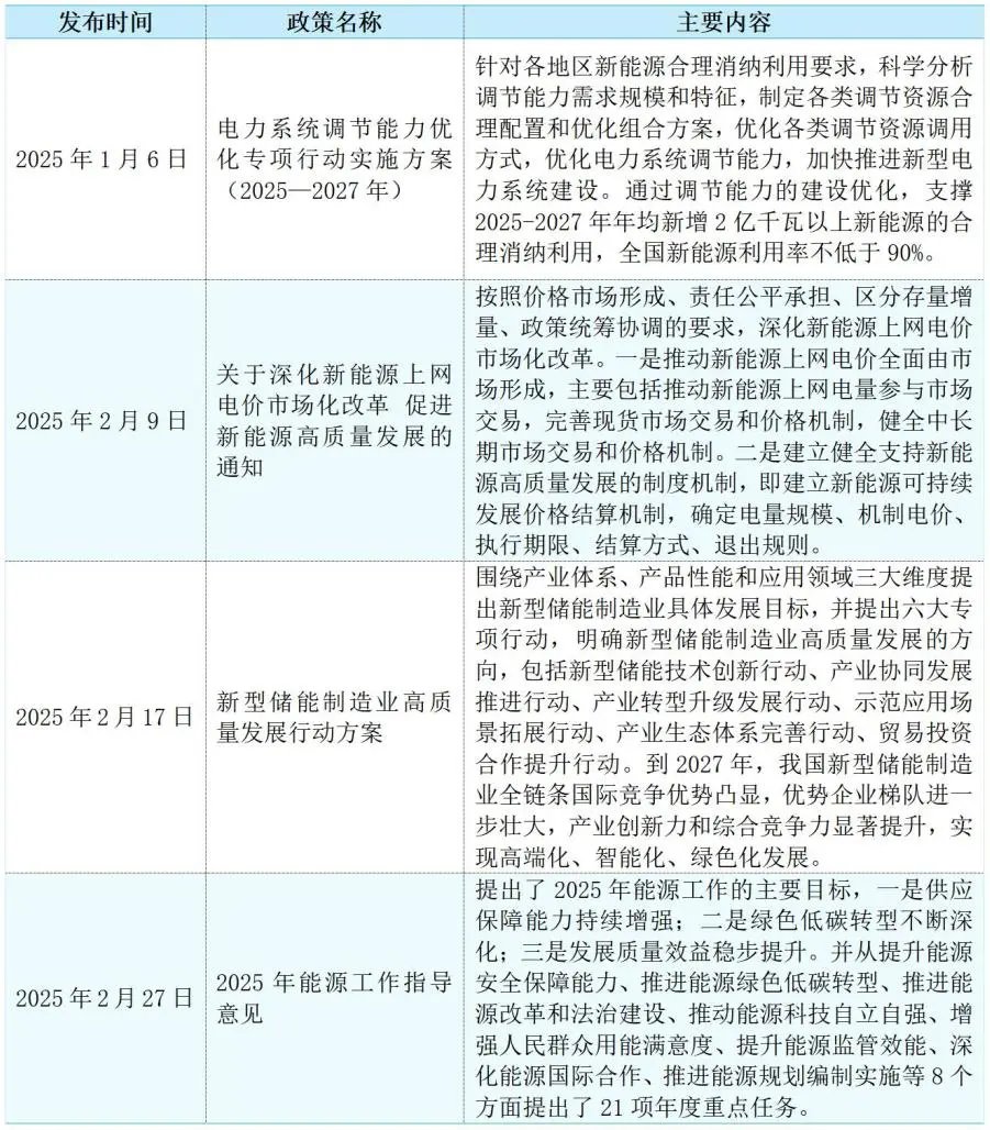 表1 2025年以來我國發(fā)布的儲能相關(guān)政策匯總