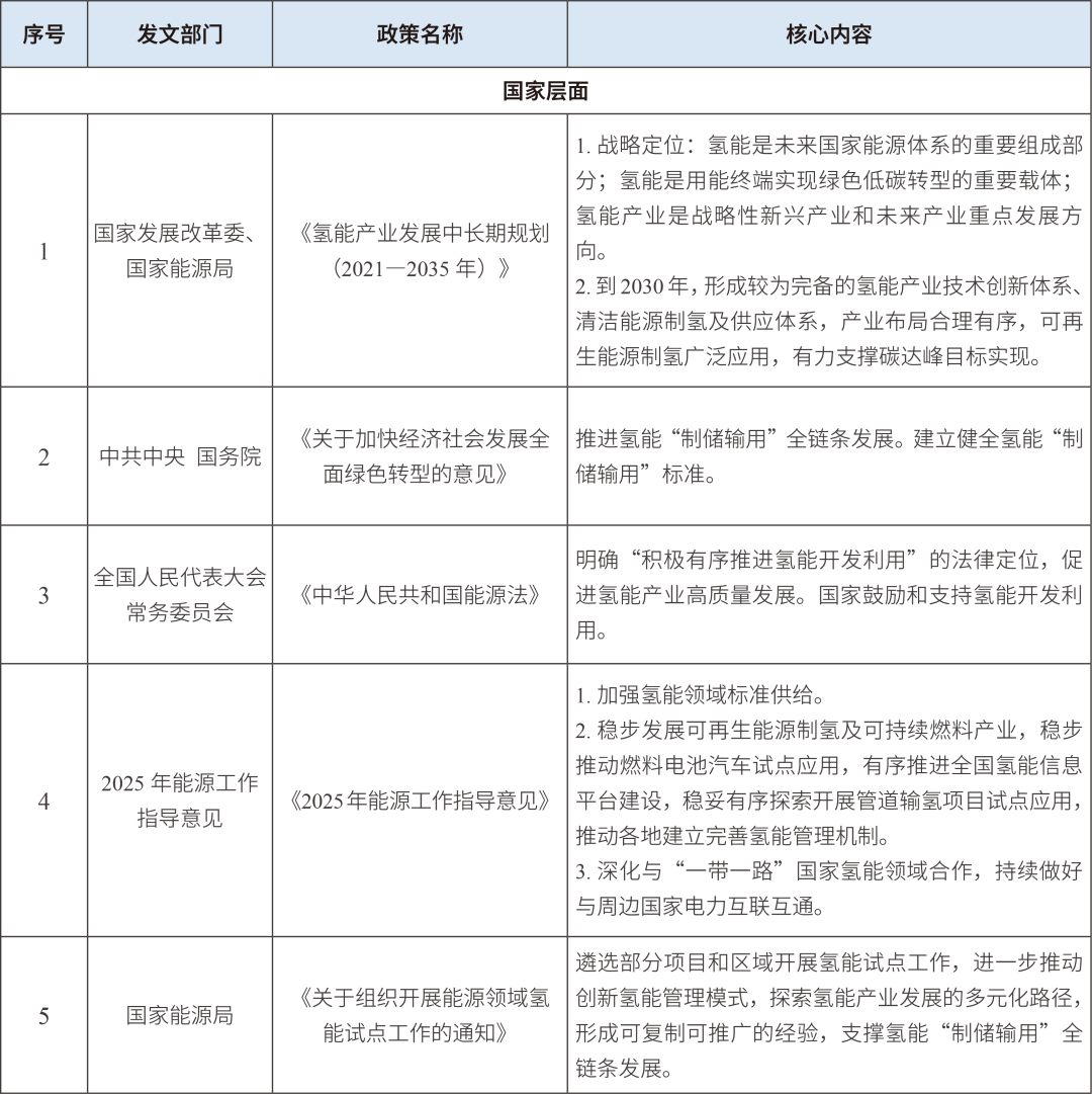 表1 國家氫能產(chǎn)業(yè)重要政策文件
