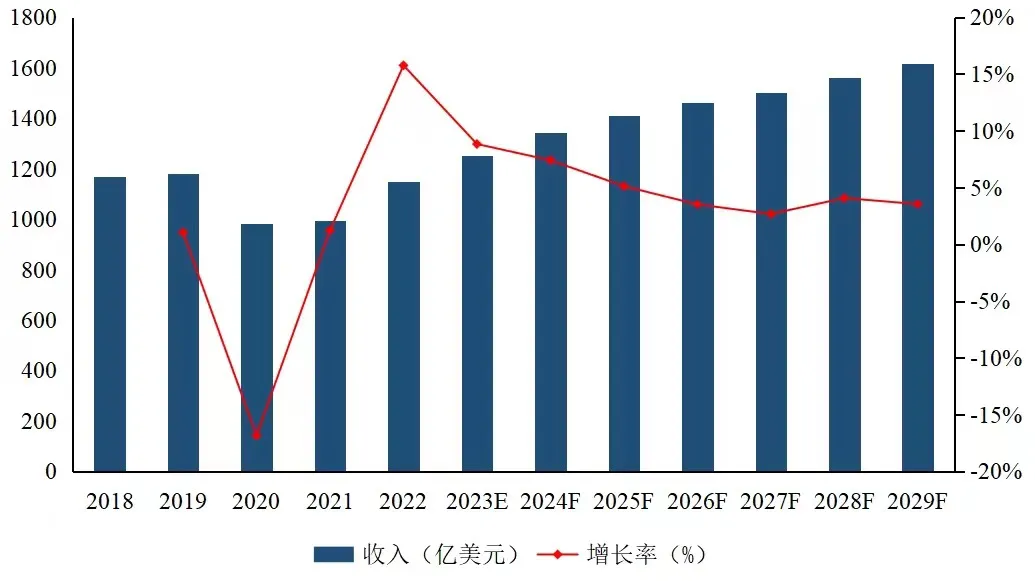 根據(jù)第三方機構(gòu)整理和預(yù)測,在全球范圍,2022年全球航空維修市場規(guī)模為1149.27億美元,預(yù)測到2029年將達到1616.73億美元,2023年到2029年復(fù)合增長率約4.37%。在全國層面,近幾年,中國航空維修產(chǎn)業(yè)得到了蓬勃發(fā)展,航空維修市場規(guī)模從2018年的94.37億美元增長到2022年的109.95億美元。預(yù)測2023年到2029年年復(fù)合增長率約6%,航空維修產(chǎn)業(yè)迎來穩(wěn)步增長階段。