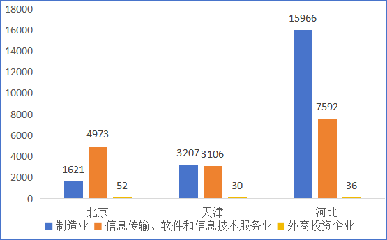 根據(jù)天眼查數(shù)據(jù),一季度,京津冀三地制造業(yè)新設(shè)企業(yè)20794家,信息傳輸、軟件和信息技術(shù)服務(wù)業(yè)新設(shè)企業(yè)15671家,總計36465家,較上年同期增長90.2%。新設(shè)制造業(yè)企業(yè)中,醫(yī)藥制造業(yè)325家,汽車制造業(yè)645家,計算機(jī)、通信和其他電子設(shè)備制造業(yè)870家,專用設(shè)備等裝備制造業(yè)4003家。在招引外商投資企業(yè)方面,京津冀三地新設(shè)立外商投資企業(yè)669家,其中制造業(yè)53家,信息傳輸、軟件和信息技術(shù)服務(wù)業(yè)65家,分別較上年同期增長60.6%和58.5%。
