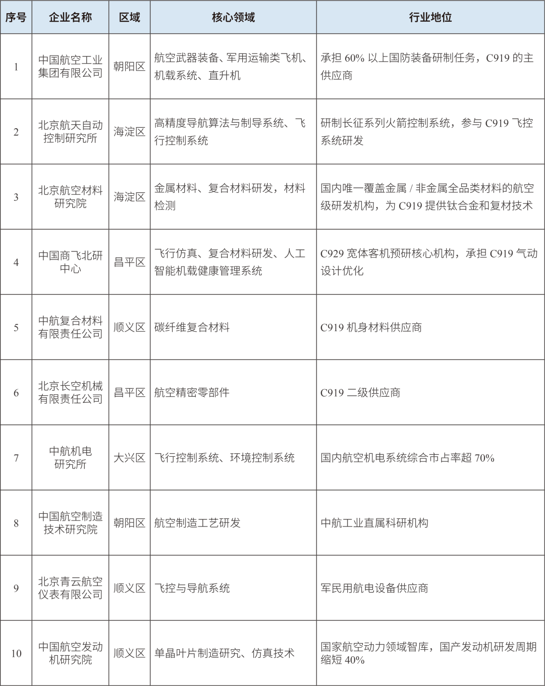 表1 北京市航空制造業(yè)重點企業(yè)清單(部分)