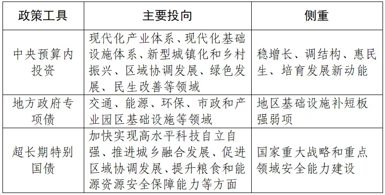 一是超長期特別國債與中央預(yù)算內(nèi)投資和地方政府專項債合力助推有效投資擴量