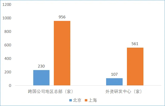 隨著我國開放步伐逐漸加快,跨國公司地區(qū)總部和外資研發(fā)中心已成為跨國公司中國本土化戰(zhàn)略的重要組成部分,是推動創(chuàng)新要素跨境流動和全球配置的重要載體。截至目前,北京市已累計認定跨國公司地區(qū)總部230家、外資研發(fā)總部22家,伴隨北京市第四批外資研發(fā)中心認定結果出爐,北京市外資研發(fā)中心總數(shù)已達到107家。相比之下,2023年上海市累計認定跨國公司地區(qū)總部956家,外資研發(fā)中心561家,年內新增跨國公司地區(qū)總部65家,外資研發(fā)中心30家。