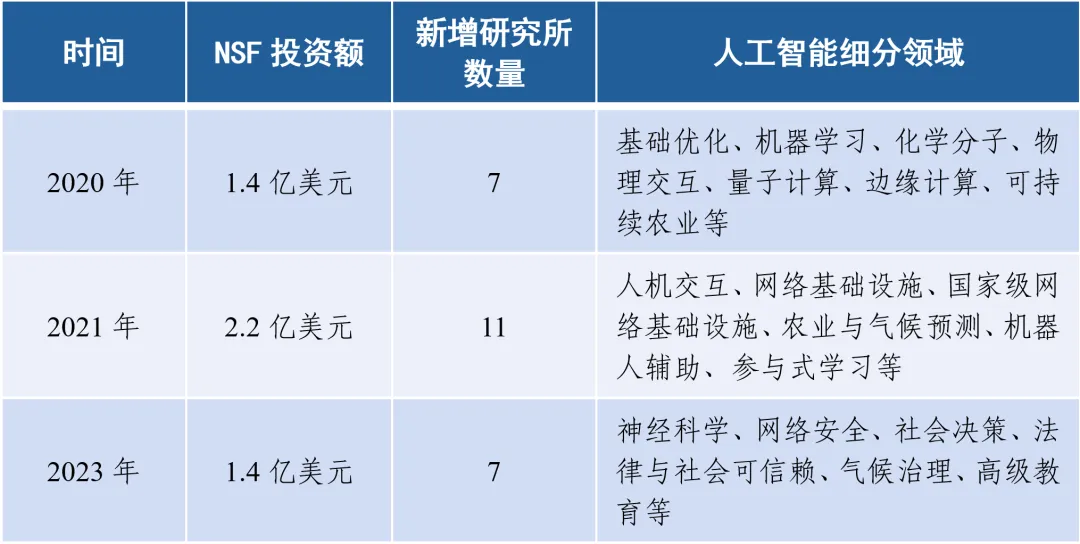 2020年起至2024年3月,美國(guó)國(guó)家科學(xué)基金會(huì)共出資5億美元建設(shè)25家國(guó)家人工智能研究所,專(zhuān)注于氣候、教育、醫(yī)療、網(wǎng)絡(luò)安全等人工智能應(yīng)用領(lǐng)域。國(guó)家人工智能研究所由美國(guó)頂尖高校領(lǐng)導(dǎo),成為人工智能科學(xué)研究的前沿陣地和推動(dòng)人工智能技術(shù)各領(lǐng)域應(yīng)用的中堅(jiān)力量,這種合作模式加強(qiáng)了科研的深度和廣度。