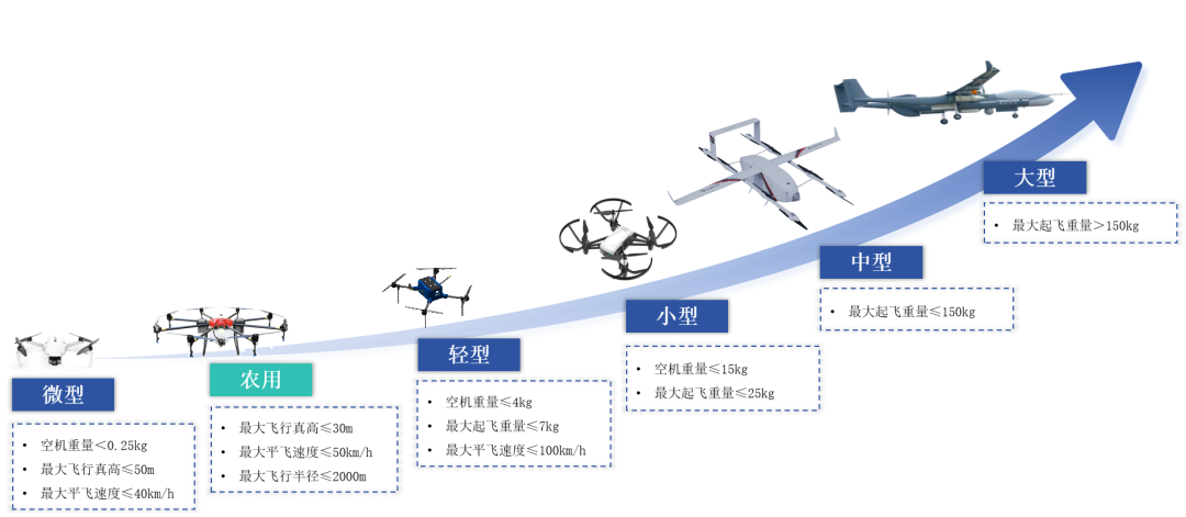 我國無人機(jī)管理基本形成“農(nóng)業(yè)、微輕型豁免、小中大型嚴(yán)格”的分層體系。根據(jù)《無人駕駛航空器飛行管理暫行條例》規(guī)定,無人機(jī)被劃分為微型、輕型、小型、中型和大型五個類別。其中,微型、輕型無人機(jī)由于其體積小、重量輕,主要用于娛樂和拍攝等輕量級應(yīng)用,無需取得操控員執(zhí)照,同時,從事常規(guī)農(nóng)用無人駕駛航空器作業(yè)飛行活動的人員也無需取得操控員執(zhí)照,但應(yīng)當(dāng)由農(nóng)用無人駕駛航空器系統(tǒng)生產(chǎn)者按照國務(wù)院民用航空、農(nóng)業(yè)農(nóng)村主管部門規(guī)定的內(nèi)容進(jìn)行培訓(xùn)和考核,合格后取得操作證書。