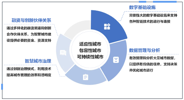 國(guó)際上,智慧城市建設(shè)主要關(guān)注包容性、可持續(xù)性與適應(yīng)性三個(gè)方面,強(qiáng)調(diào)智慧城市建設(shè)對(duì)于提高社會(huì)包容性、促進(jìn)城市可持續(xù)發(fā)展以及提高城市韌性、快速應(yīng)對(duì)挑戰(zhàn)的重要性。影響智慧城市建設(shè)的關(guān)鍵驅(qū)動(dòng)因素包括數(shù)字基礎(chǔ)設(shè)施、數(shù)據(jù)管理與分析、融資與創(chuàng)新伙伴關(guān)系及智慧城市治理。