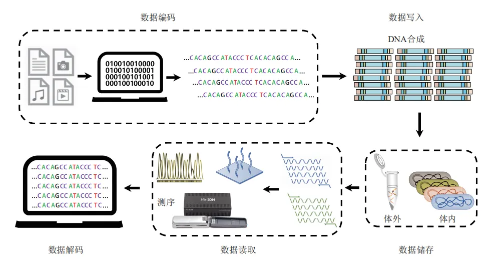 圖1 DNA數(shù)據(jù)存儲及讀取流程圖